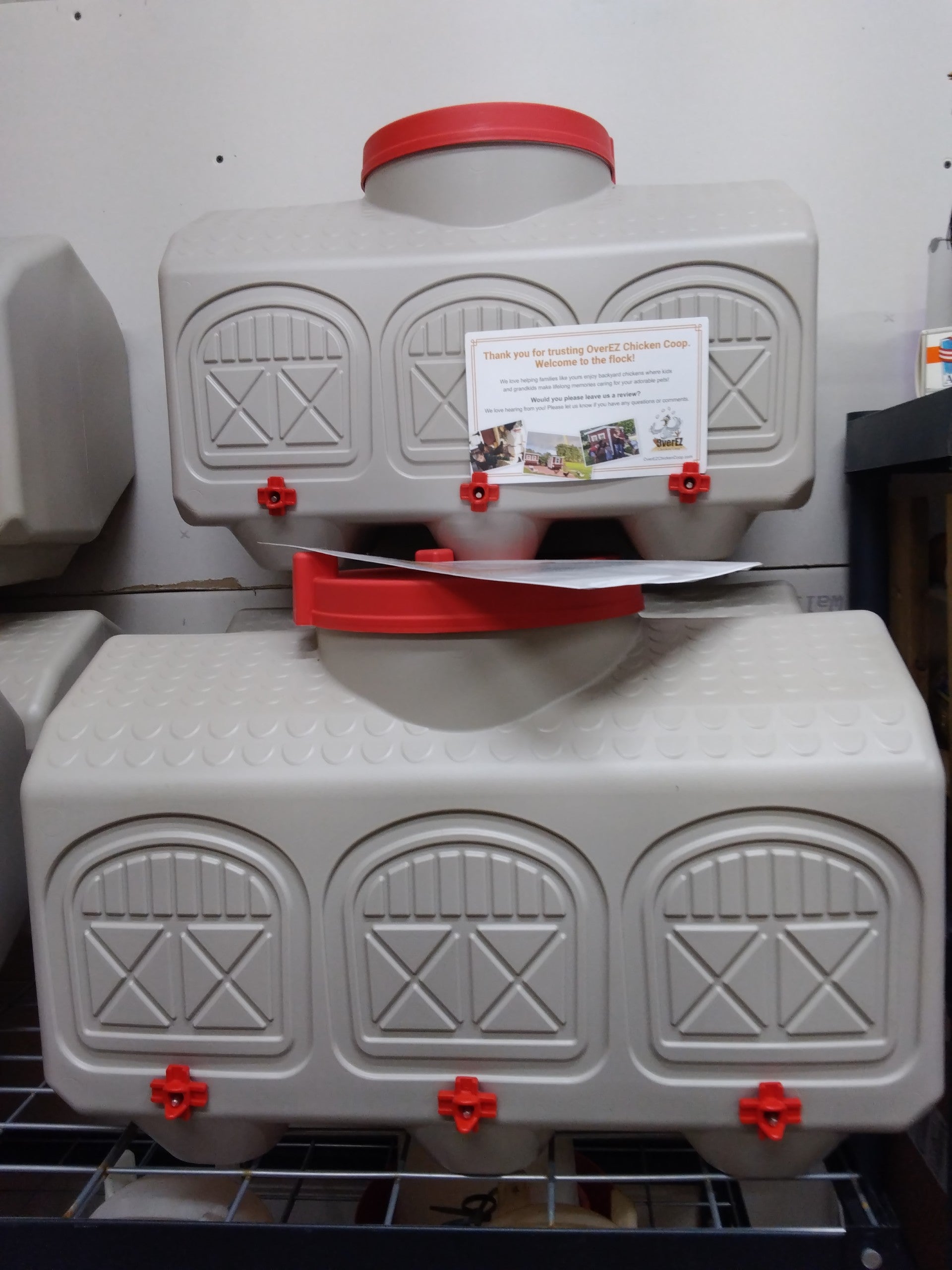 The OverEZ Chicken Waterer holds 12 gallons of water and eliminates daily maintenance by providing clean water for up to a month! Our no-waste, drip-free nipples allow 3 chickens to drink at one time. The OverEZ Chicken Waterer is durable, made to last, and comes equipped with a power cord access port.